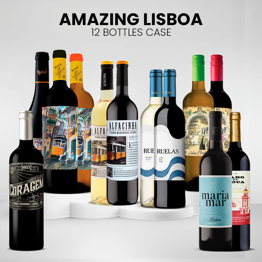1x Port 6 Red 75cl, 1x Port 6 White 75cl, 1x Port 6 Reserva 75cl, 1x Alfacinha Red 75cl, 1x Alfacinha White 75cl, 1x Ruelas Red 75cl, 1x Ruelas White 75cl, 1x Cabo da Roca Red 75cl, 1x Julia Florista Red 75cl , 1x Julia Florista White 75cl, 1x Maria Mar Red 75cl and 1x Coragem Red 75cl.