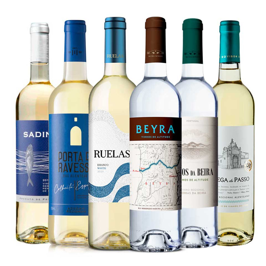 1x Beyra White 75cl, 1x Altos da Beira White 75cl, 1x Ruelas White 75cl, 1x Porta da Ravessa Special Harvest White 75cl, 1x Sadino White 75cl and 1x Adego do Passo White 75cl.