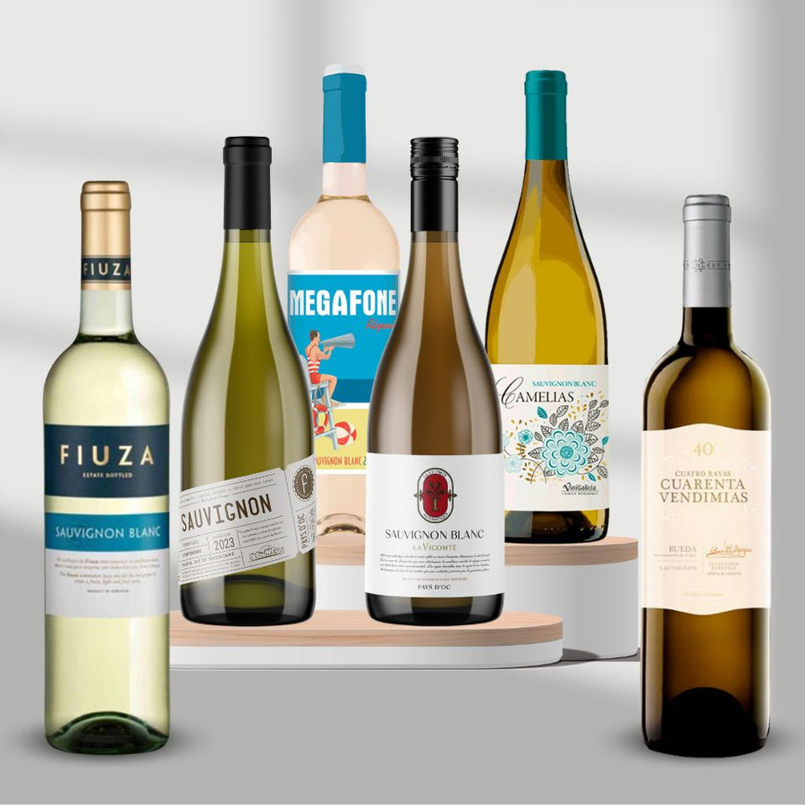 1x Camelias Sauvignon Blanc (Spanish) 75cl, 1x Megafone Sauvignon Blanc (Portuguese) 75cl, 1x Fiuza Sauvignon Blanc (Portuguese) 75cl, 1x Ticket Sauvignon Blanc (French) 75cl, 1x Authentique Sauvignon Blanc (French) 75cl, 1x Cuarenta Vindimias Sauvignon Blanc (Spanish) 75cl.