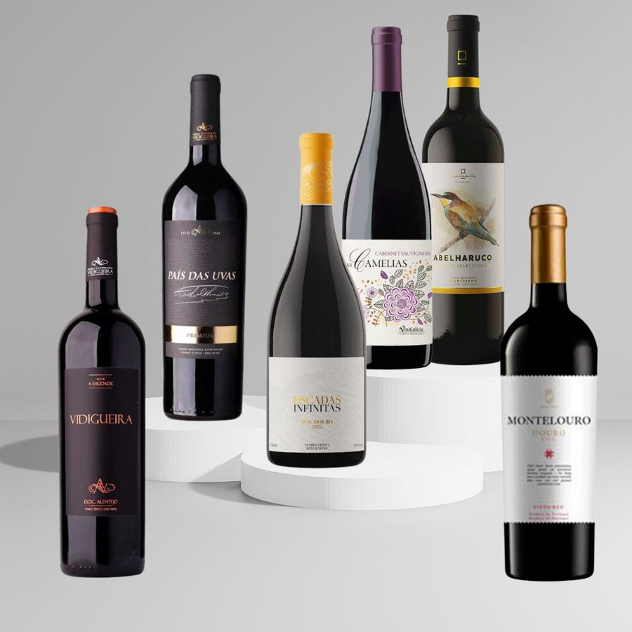 2x Montelouro Douro Red 75cl, 2x Escadas Infinitas Douro Red 75cl, 2x Abelharuco Red 75cl, 2x Pais das Uvas Premium Red 75cl, 2x Vidigueira Red 75cl and 2x Camelias Cabernet Sauvignon 75cl.